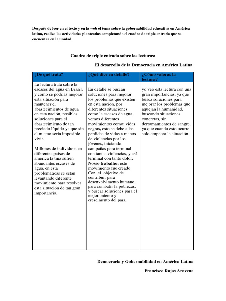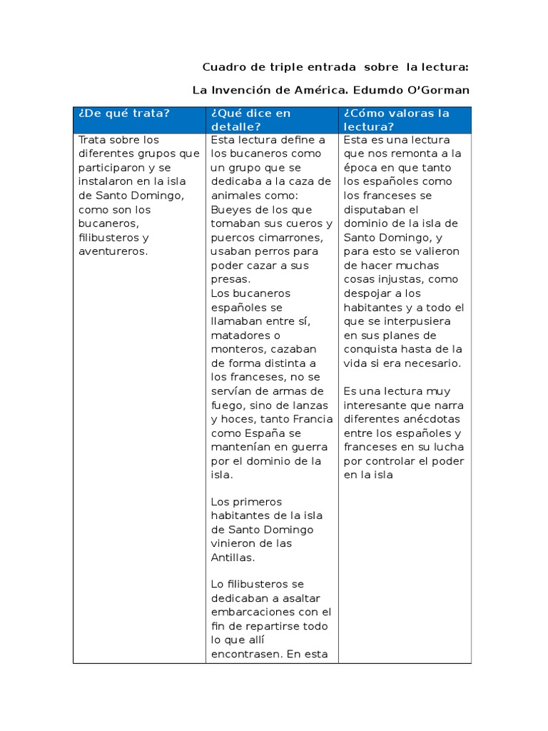 Cuadro De Triple Entrada Sobre Las Lecturas