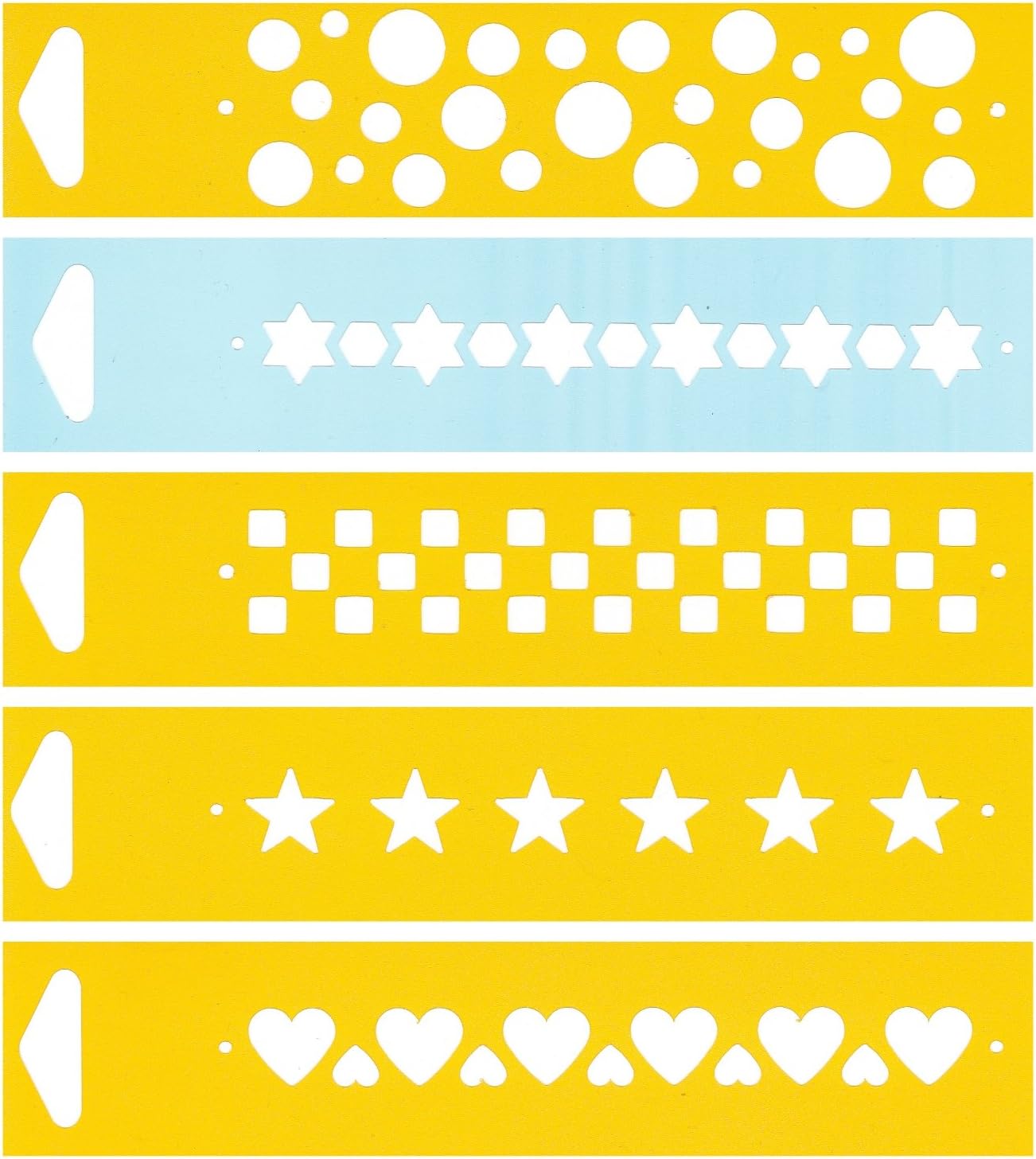Amazon Com Set De 5 6 9 X 1 7 Reutilizables Plantillas De Plastico Flexible Para Tartas Diseno Decoracion Pared Home Muebles Tela Lona Decoraciones Aerografo Dibujo Redaccion Plantilla Circulos Estrellas Damas Corazones